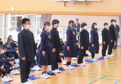 校長先生からは,中学校生活始まってすぐ大役を引き受けることはとても勇気がいることである,学級や仲間のために一生懸命頑張ってほしい,などと激励を言葉をいただきました。