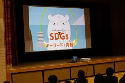 総合的な学習の時間では,「SDGs」について調べたり追及したりしていきます。今日は学年集会で,これからの学習についての話や,動画を視聴しながらSDGsとはどのようなことなのかを知りました。