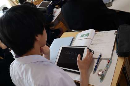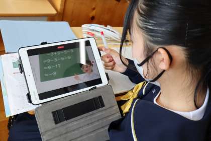 学習用タブレットに説明を録画しながら,ポイントを絞って,分かりやすく説明できるように努めていました。