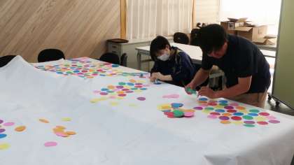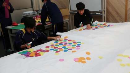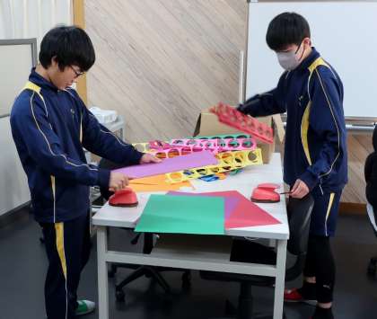 16日(火)朝、ふれあい教室で生徒会執行部のメンバーと生徒会担当の先生方が水龍祭(体育祭)に向けて全校生徒の気持ちを高める企画の準備を行っていました。今朝作っていたものは、全校生徒を巻き込んでの企画です。どんなものが仕上がるのか楽しみです。準備をしている執行部の皆さんも楽しそうに取り組んでいたのはとても良かったです。