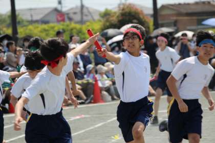 「3年8の字跳び、浄水リレー」