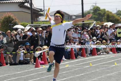 浄水リレーでは、学級の仲間に大きな声援を送り、最後まで諦めずバトンをつなぎました。