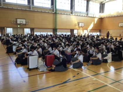修学旅行がスタートしました。生徒はみんな元気に参加できています。3日間良い思い出ができると良いと思います。出発式では一足早く?ディズニーキャラクターが登場してみんな盛り上がっていました。バスも予定通り出発できました。こちらで現地の様子を随時お知らせします。