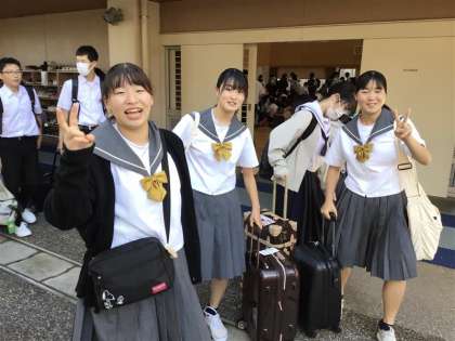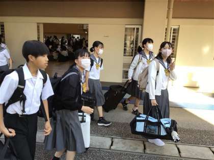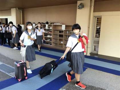 出発の様子です。みんな笑顔で体育館を後にしました。多学年の先生方が見送りをしてくれました。