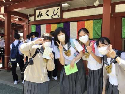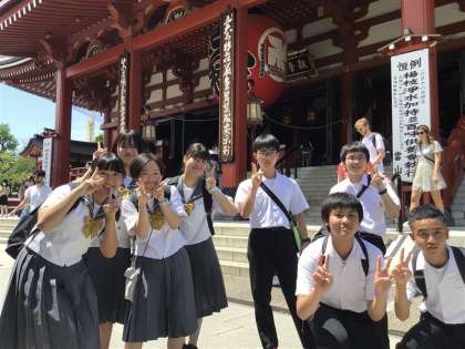 浅草寺をお参りしたり、おみくじを引いたりしているグループもありました。浅草寺のおみくじは凶が出やすいことで有名ですが、見事に?凶を引き当てている生徒がいました。これも良い記念です。