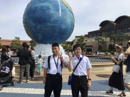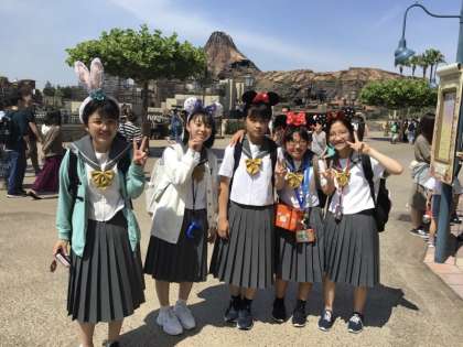 リゾートライナーに乗ってディズニーシーの前まで移動し、学年全体で記念撮影をしました。9時前にゲートが開き、生徒の皆さんは夢の国に入っていきました。天候は晴れで風もなく、ディズニーシーを楽しむのに最高の状況です。