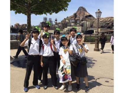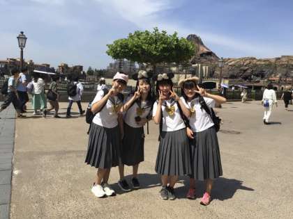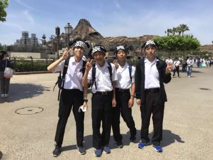 パーク内は平日にも関わらず修学旅行生を中心に賑わっています。混雑するほどでもないため、生徒たちはのんびりと楽しんでいるようです。