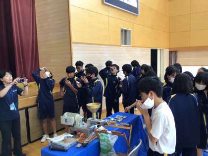 8日(木)なのはな農園の会長様に来ていただき、なのはな農園で作っている「なたね油」について伺いました。農園では、なたね油のほか醤油やネギも作っているそうです。有機肥料を使って農地を豊かにし、ネギを育てたり、品質の良い菜種を育てたりして、お客さんに喜んでもらいたいという思いなどを話していただき、「仕事へのプライド」や「プロの熱意」などを学びました。また、出来たてのなたね油や醤油を味見させていただき、そのおいしさに驚かされました。