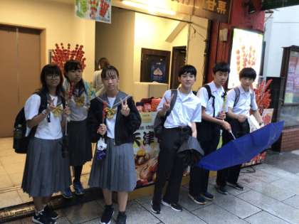 午前10時前に横浜中華街に到着しました。到着時は大雨ですが、どのグループもお目当てのお店に向かって行きました。ホテルからの移動のバスの中は疲れもあってか寝ている生徒が多かったです。