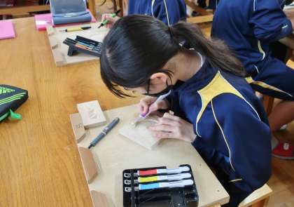 12日(月)、1年生の社会科の授業では、地理の学習で寒暖差が激しい地域の暮らしについて調べたり、話し合ったりして理解を深めていました。2年生の美術の授業では、木彫の学習でデザインの下書きをした木片に彫刻刀を入れて少しずつ彫り進めています。3年生の理科等の授業では、修学旅行前に行った定期テストの返却が行われました。返却直後は結果に感情を露わにしていましたが、先生の説明が始まるとすぐに切り替えて集中していました。