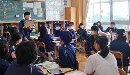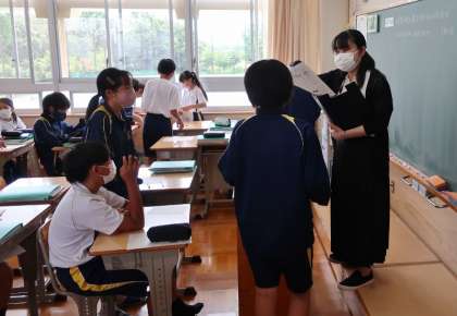 26日(月)、1年生の社会や英語の授業では、単元テストの結果を受け取って見直しなどをしていました。ある子は高得点でも自分のミスを悔しいとしっかりと反省していて感心しました。2年生の国語の授業では、教材の内容に関連して、様々なメディアの特徴についてグループで活発に話し合うなど、協働的に取り組んでいました。3年生の国語の授業について、説明文の読解の学習で、各グループで話し合った作者の意図について、全体で発表してクラスで共有していました。