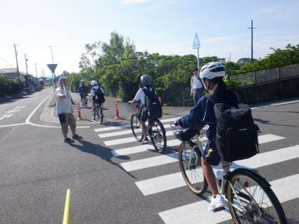 本日、PTCAによる交通安全見守り活動が行われました。左右の安全を確認して交差点を渡ったり一列に並んで走行したりしながら、安全に気をつけて走行していました。