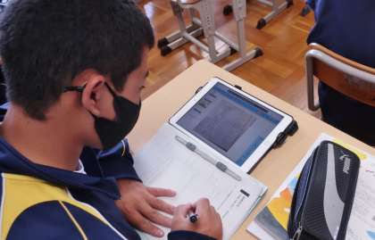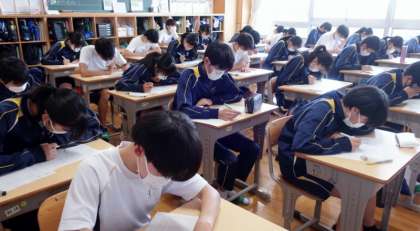 6日(木)、1年生の英語の授業では、ALTとの対話のテストを行っていました。あらかじめ示された質問の中からいくつか取り上げられて対話をするということで、順番を待つ生徒はとても緊張していました。2年生の国語の授業では、説明文の読み取りの学習を行っていました。みんなの意見をタブレットで共有して、他の子の意見を読んでさらに自分の考えを深めていました。3年生の英や数学の授業では、テスト形式での復習が行われていました。3年生は来週、今年度最初の実力テストが控えていますので、テストに慣れることも大切です。