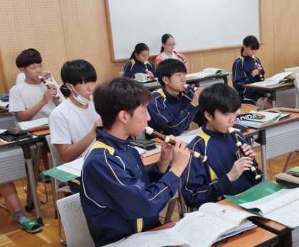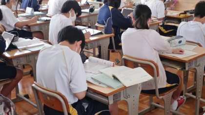 11日(火)、1年生の理科の授業では、気体の学習を行っていました。水素を発生させてどのような性質があるのかを確かめる実験を行っていました。安全面を考え、事前の説明をしっかりと聞いていました。2年生の国語の授業では、夏休みの作文等の課題に向けて準備をしていました。作文に取り組んでいる生徒は教科書や資料集などを参考にして少しずつ書き進めている感じでした。3年生の音楽の授業では、器楽の学習としてリコーダーに取り組んでいました。「聖者の行進」の楽譜を確認し、スタッカート等のアーティキュレーションを考えた演奏に挑戦していました。