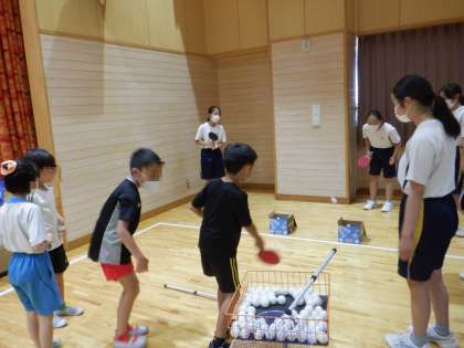 本日は卓球部が行いました。ラケットの握り方や球の打ち方など、小学生一人一人に丁寧に声かけをしながら活動しました。