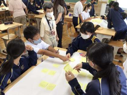21日(木)午後、総合的な学習の時間を使ってまごころフェスタの準備が行われていました。この日は3つのクラスで講師の方をお招きして、さまざまなことを教えていただきました。講師の方の話を真剣に聞いたり、実際に体験させてもらいながら学んだりと当日に向けて貴重な機会となりました。