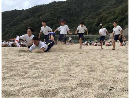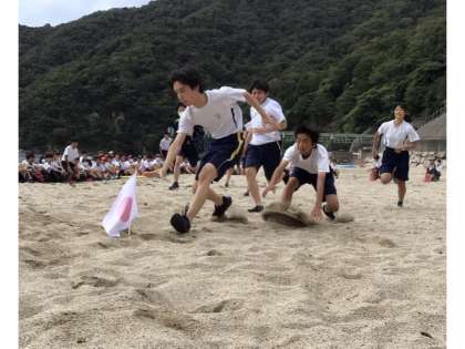 最初の種目です。クラスの勝利のために、選手はみんな必死で旗を目指して、応援も大変盛り上がりました。
