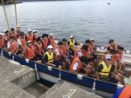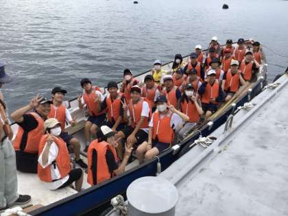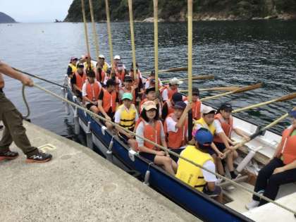 カッターに乗船し、いよいよ出港です。ウキウキしている子や不安げな子と様々です。波は穏やかですので安心して活動できそうです。