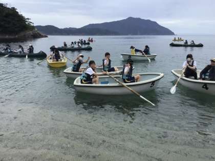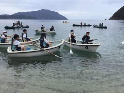 ボートを浜に下ろすのに一苦労していましたが、乗り出すと同乗者と息を合わせて海上の旅を満喫しています。