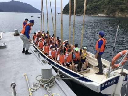 午後のプログラムが始まりました。カッター活動は4艇で行われ、説明を聞いてそれぞれ出港しました。