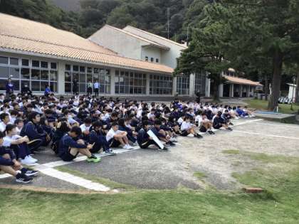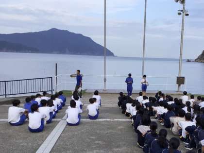 3日目がスタートしました。朝のつどいでは、昨日から同宿している岐阜県の中学校と一緒に行い、互いに学校紹介などを行いました。