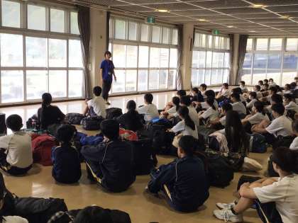 昼食後、プレイホールで最後の行事である終わりのつどいを行いました。3日間を振り返り、これからの学校生活に生かすことをみんなで確認して会を終えました。
