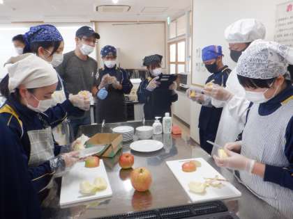 なかなか果物の皮をむくにも苦労しながらも、お客さんが喜ぶ商品作りを目指しています。