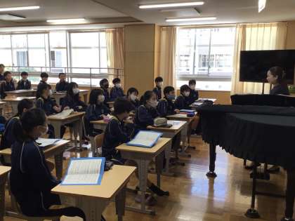 13日(金)、1年生の体育の授業ではバスケットボールの学習を行っていました。攻撃や守りの練習をした後、実戦で確かめていました。どのコートでもパスを工夫しながらゴールを目指す様子が見られました。2年生の音楽の授業では、合唱指導の経験豊富な先生から歌う姿勢のポイントを丁寧に教えてもらっていました。合唱コンが近いためか、みんな真剣な表情で話を聞いていました。3年生の社会や理科、英語の授業では、昨日行われた学習診断テストの復習を行っていました。先生の解説を聞いたり、仲間と教え合ったりして「なるほど!」と理解を深めている様子が見られました。