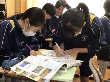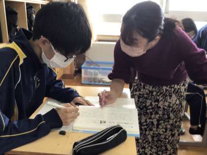 16日(月)、1年生の美術の授業では、色の学習を行っていました。色の種類や属性等、彩色をする上で必要な知識を学び、実際に彩色しながら確認していました。2年生の社会の授業では、北海道の人々の暮らしや産業について学習していました。自然教室の話題も関連づけながら考える場面もあり、良い学びになっています。3年生の国語の授業では、棋士の羽生善治九段の著作について、文章を要約したり、話題のAIについて話し合ったりしていました。藤井聡太八冠の話題があったばかりでタイムリーな教材を味わって欲しいと思います。