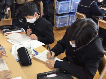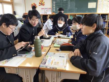 15日(水)、1年生の国語の授業では、情報伝達のための作文の学習を行っていました。各自がテーマを決めて調べたことをまとめた作文について班で読み合い学級全体でも紹介し合って、情報をうまく伝える工夫等について話し合っていました。2年生の体育の授業では、跳び箱の学習を行っていました。ロイター板を効率よく使う練習を行った後、実際に低い段の跳び箱を使って跳んでいました。これから徐々にレベルを上げていくようです。3年生の社会の授業では、経済の物流について学習していました。ネット通販をイメージしながら、工夫や努力をみんなで話し合っていました。