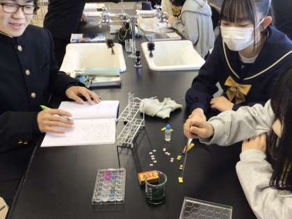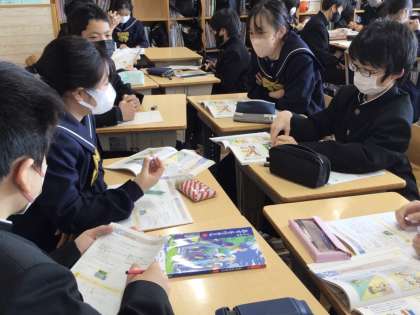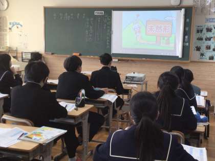 27日(月)、1年生の道徳の授業では、公平と不公平をテーマに学習をしていました。身近な場面を想定して、グループや学級全体で話し合い、相手の立場や気持ちについて触れる意見が多く出されていました。2年生の国語の授業では、文法についての学習を行っていました。覚える内容が多い内容ですが、曲に合わせて楽しく覚える教材を活用していました。少し恥ずかしそうな感じでしたが、声に出して見ることはとても良いことです。3年生の理科の授業では、酸・アルカリの学習を行っていました。様々な水溶液の性質を実際に実験をして確かめていました。細かな操作や多くの薬品を使って進めていましたが、協力してスムーズに取り組んでいました。