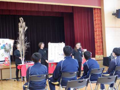 12月11日(月)「音読サークル すみれ」様より、読み聞かせの会が行われました。「どんぐり」や「すすき」の俳句を紹介したり、ミュージックベルとトーンチャイムで「きよしこの夜」を演奏したりして、季節感を味わいました。