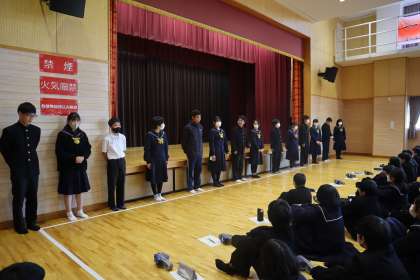 各学級の級長が,今年の学級の振り返りと来年に向けてどのような学級にしたいかなどの発表をしました。