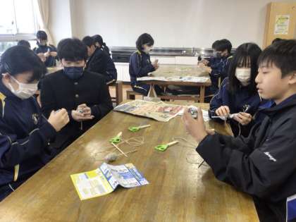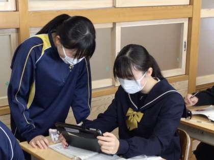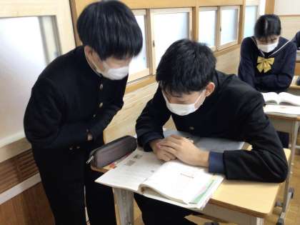 22日(月)、1年生の美術の授業では、立体模型の制作を行っていました。果物や野菜の粘土で作ることを目指して、まずは作品の芯の部分を作っていました。新聞紙を紐で固めて非常に硬い塊を作ることに挑戦していましたが、新聞紙を丸めたり、折り畳んだりと試行錯誤をし、同じグループの仲間同士で声をかけ合ったりして頑張って取り組んでいました。2年生の数学の授業では、四角形の学習を行っていました。これまで学んできた様々な四角形をベン図や言葉で整理しながら、各種四角形の関係性について考えていました。最初、先生の質問にすぐに気づく子がいませんでしたが、ヒントや仲間と話し合う中で、理解が深まっていました。気づいていない子が「分からない」と素直に話すと、すぐに仲間が寄り添って丁寧に説明する姿が見られたのも良かったです。3年生の英語の授業では、読み物資料の読解を行っていました。世界的に有名なスティーブ・ジョブズの読み物で、読み応えのある内容でもあるようでした。演習では先生や友達と相談しながら、内容を読み解いていました。