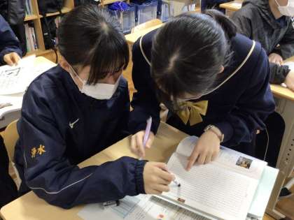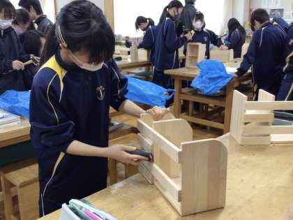 31日(水)、1年生の技術の授業では木工の学習を行っていました。作品作りも大詰めで、多くの生徒が紙やすりで木材の表面や角を削って仕上げに取り組んでいました。中には、余った材料を活用して、全体にネコのデザインを取り入れるなど、工夫が見られる生徒も多く感心しました。きっと愛着をもって大切に使用するのではないかなと思いました。2年生の国語の授業では、評論文の学習を行っていました。本文の中で筆者が何を伝えているのかを各自で読み解き、全体で確認していました。発言、発表に意欲的な生徒ばかりで、文章を読み解く力も備わってきていることを感じました。3年生の数学の授業では、標本調査の学習を行っていました。調査の種類や標本調査の基本的な考えを学び、自分たちでも実際に標本調査の疑似体験を行っていました。私たちが目にする多くの資料で調査結果が活用されていますので、正しく理解することは社会で生活する上でも大切なことだと感じました。