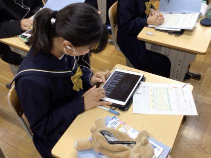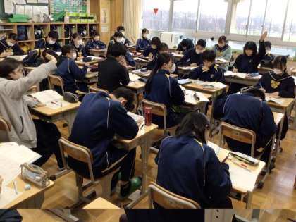 5日(月)、1年生の音楽の授業では、曲作りの学習を行っていました。事前に自分で作ったリズムに合わせた旋律を考え、ワークシートに記入したものを学習用タブレットの電子ピアノで確かめながら仕上げていました。一人一人が作曲できるのもタブレットならではの学習です。2年生の国語の授業では、評論文の学習を行っていました。先生から示された二つの視点で、本文をじっくりと読み込みながら文章の特徴をつかんでいました。名画「最後の晩餐」を分かりやすくまとめた文章ですので、分析を通して自身の文章力も高まると良いと思います。3年生の国語の授業では、詩の学習を行っていました。詩に込められた作者の想いを言葉や表現に着目して、各自が読み解いたことを全体で意見交流していました。中には深い読み取りをしている意見もあり、みんなで感心して聞いていました。