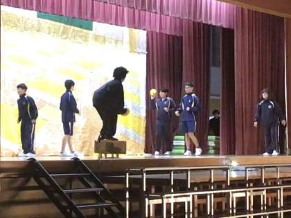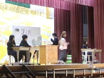 寸劇のコーナーでは、3年生の先生達を主役に様々なエピソードを再現していました。先生たちの仕草や口癖などをよく捉えて再現していたため、3年生の生徒は大喜び。3年生の先生たちも自分たちのことながらとても盛り上がって楽しんでいました。寸劇担当の生徒の皆さんの演技力に感心しました。