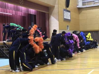 休憩の後、パフォーマンスコーナーとして、3年生がこれまで各行事で披露してきた表現活動を再現しました。1、2年生の時の体育祭の学年表現活動と3年生の水龍アピールです。完成度の高さと構成の良さに3年生の皆さんも思わず魅入っていました。
