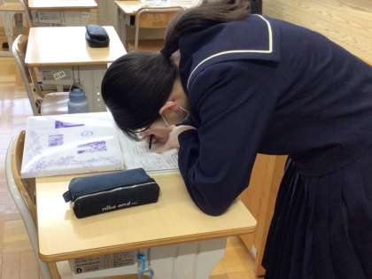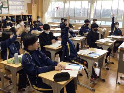 5日(火)、1年生の家庭の授業では、調理の学習を行っていました。今回は非常食を取り上げ、災害時に限られた材料で作るための知識を教えてもらっていました。今後、災害用の備蓄品を考える上でも参考になる学習でしたので、ぜひ実践してほしいと思います。2年生の数学の授業では、統計の学習を行っていました。授業では現行の教科書から導入された「箱ひげ図」を学習し、統計の読み取りを行っていました。聞き慣れない言葉が多く飛び出していましたが、先生の説明をしっかりと聞いて演習にも取り組んでいました。データが溢れる現代に必要は力の一つと感じました。3年生は最後の卒業式練習後、各教室で通知表を受け取ったり、互いに卒業アルバムにメッセージを記入したりとそれぞれ明日の卒業に向けて穏やかに過ごしている感じでした。