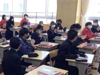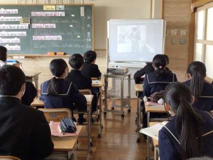 21日(木)、本日は教科の授業が今年度最終となります。1年生の英語の授業では、チャップリンの映画「街の灯」を題材にした教科書の読み物資料で使った学習を行っていました。授業の最後には異本の一部分ですが映画そのものを鑑賞していました。英語の授業をきっかけに様々な文化にも関心をもってもらえると良いと思いました。2年生の音楽の授業では、これまでの復習として、習った語句等を使ったビンゴゲームで楽しく復習に取り組んでいました。今年度学んだことをしっかりと押さえて次に備えてほしいと思います。