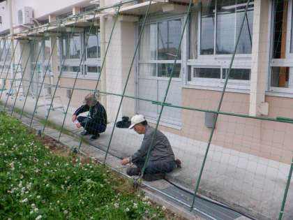 また、まごころ教室の前に緑のカーテンを這わせるために、ネットを整備していただきました。このネットを伝って、緑のカーテンが夏の日差しから守ってくれることでしょう。