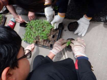 このように、土や草花に触れる機会はとても貴重な経験でした。今度はこの苗が大きくなった時に、花壇に植える作業があるそうです。ぜひ、自分たちが関わった花に愛着を持ってもらえると嬉しいです。