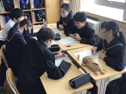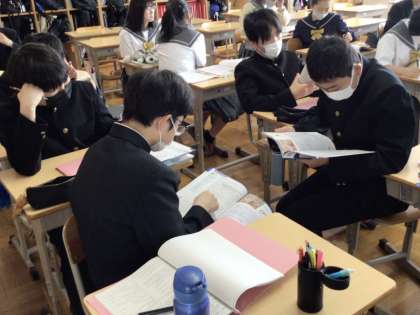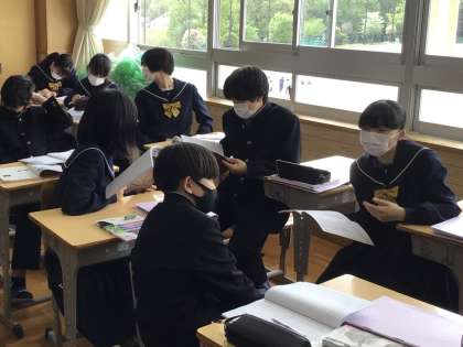 26日(金)、1年生の道徳の授業では、体育祭に向けてクラスで大切にしたいことを話し合っていました。思考ツール「ダイヤモンドランキング」を使って個人やグループ、そして学級全体で話し合いながら最終的にクラスとして大切にしたいものを選んでいました。2年生の理科の授業では、分解の学習を行っていました。前時の実験結果をみんなで確認した後、結果から考えられることを各自でまとめた後、近くの席の仲間と考えを出し合って深めていました。3年生の英語の授業では、読み物資料の読解を行っていました。分かりやすく日本語訳を発表してくれた仲間に対して賞賛の声が上がっていました。互いの良さを認め合いながら活動する姿がとても良かったです。