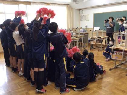 13日(月)午後、3日後に迫った水龍祭の練習に取り組んでいます。今日はあいにくの天気ですが、体育館や多目的ホール、教室等の限られた場所で工夫して表現活動や競技の練習を行っています。いろいろな場所から生徒の元気な掛け声等が響いています。生徒が朝や帰りに使用する階段の踊り場には3年生の生徒がモデルになったポスターが掲示され、盛り上げていこうと全校生徒への呼びかけを行なっています。当日の天気も良さそうですし、みんなで盛り上がると良いと思います。