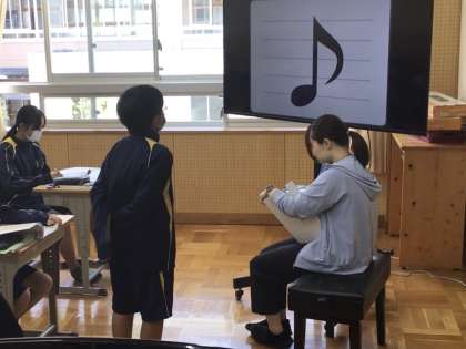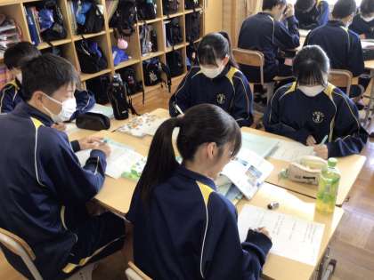 14日(火)、1年生の音楽の授業では、歌唱の学習を行っていました。これまで練習してきた一曲として校歌のテストを中心に行っていました。緊張しながらこれまでの成果を一生懸命に表現していました。2年生の理科の授業では、化学変化の学習を行っていました。タブレット上で原子モデルを自分で操作しながら化学反応式をどのように作ったら良いかについて理解を深めていました。3年生の国語の授業では、漢文の学習を行っていました。有名な論語を日本語として読む「訓読」に取り組み、グループの仲間と返り点を確認する等声を出し合って協力していました。論語の代表的な文章を味わってほしいです。