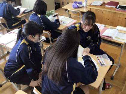 23日(木)、1年生の家庭の授業では、裁縫の学習を行っていました。今後の製作などに必要な基本的な道具の種類や働き、縫い方など、小学校の学習の復習もしながら取り組んでいました。2年生の国語の授業では、文章の構成の学習を行っていました。教科書の説明文に習い、各自がテーマを決めて、文章の構成や図表等との関係を考えながら作文を行っていました。テーマは身近な話題からニュースで取り上げられている社会的な課題等様々あり、タブレットを使いながら、根拠となる資料等を探していました。どんな文章になるのか楽しみです。3年生の英語の授業では、読み物の学習を行っていました。教科書に掲載された海外の俳句について取り上げた文章にについて、先生が提示した英文による質問について各自で考えたり、仲間と相談したりしていました。海外の俳句事情も分かって興味深い授業です。