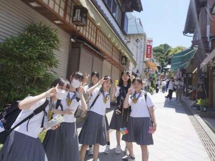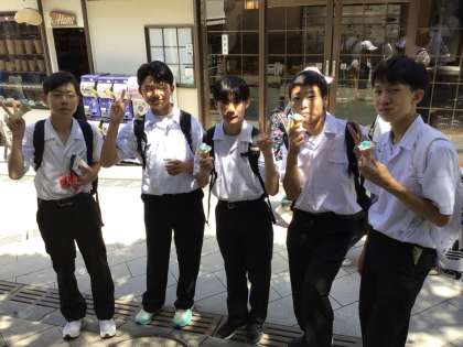 食べ歩きや散策を楽しんでいます。平日にも関わらず人が多いです。