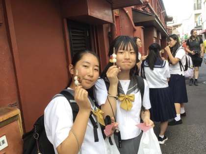 人形焼やお団子等の買い物や食べ歩きを楽しんでいます。