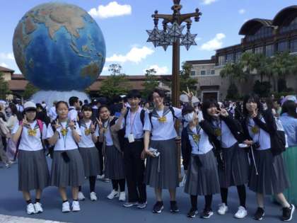 9時過ぎに入場し、班ごとにお目当てのところに向かいました。今日のディズニーシーは大勢の来場者で大変賑わっています。
