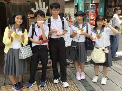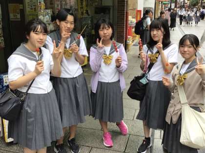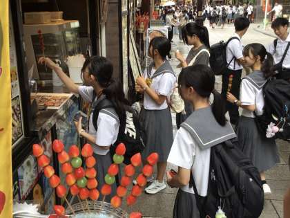 いちご飴や豚まん、小籠包を食べている生徒が多いです。